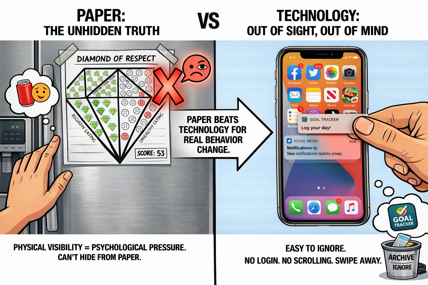 Paper beats technology when it comes to real behavior change. Not because paper is better. Because you can't hide from paper