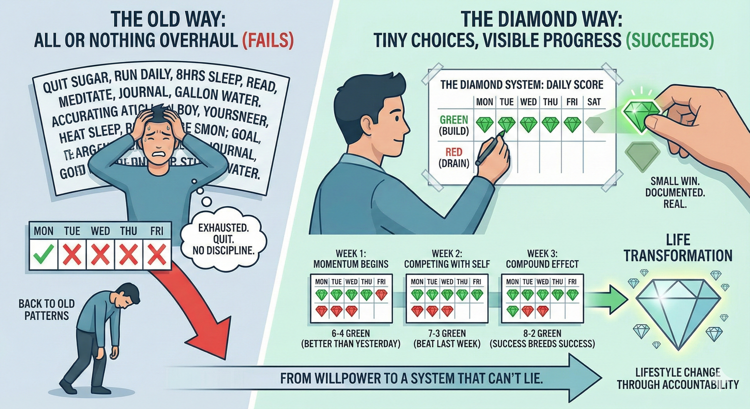 The Diamond works because it gamifies tiny daily choices into visible, undeniable progress.