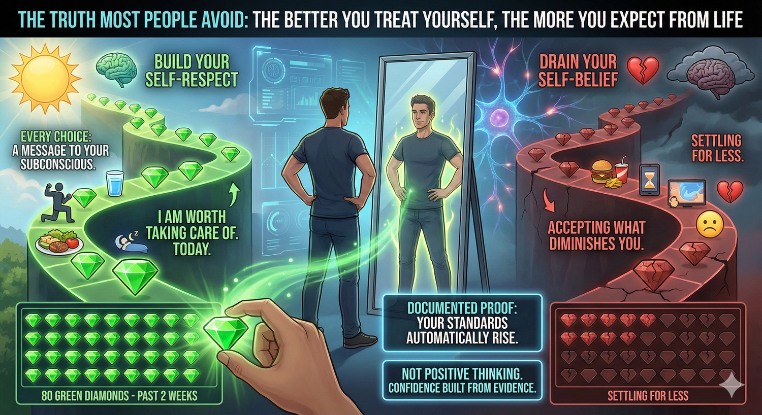 Every time you choose green over red, you send a clear, undeniable message to your subconscious: "I am worth taking care of." Not someday. Today. Right now.